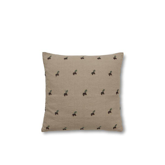 Acorn putetrekk 45x45cm - Beige med broderte eikenøtter