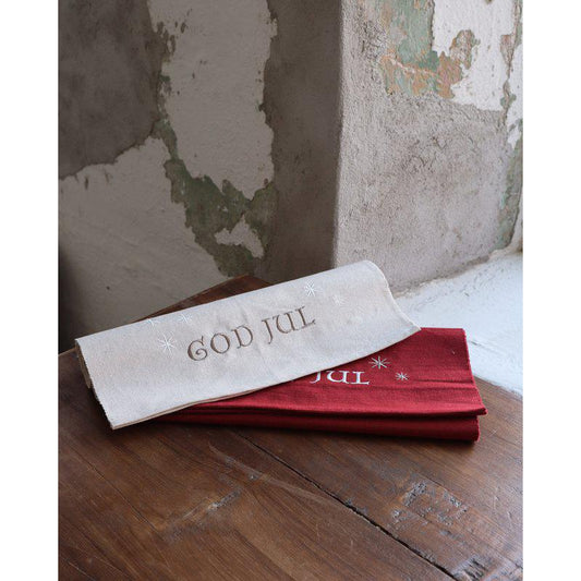 Yule handlenett 38x40cm, bomull - Natur/Rød
