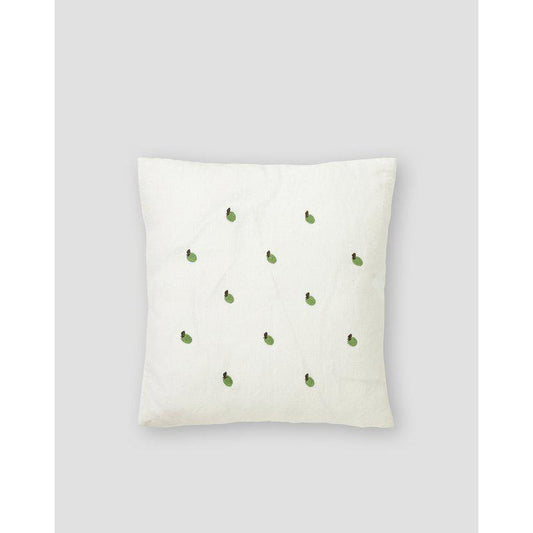 Apple - Putetrekk i lin og bomull med broderte epler - Hvit/Grønn - 45x45cm