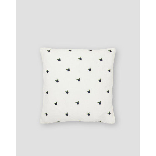 Blueberry - Putetrekk i lin og bomull med broderte blåbær - Hvit/Blå - 45x45cm