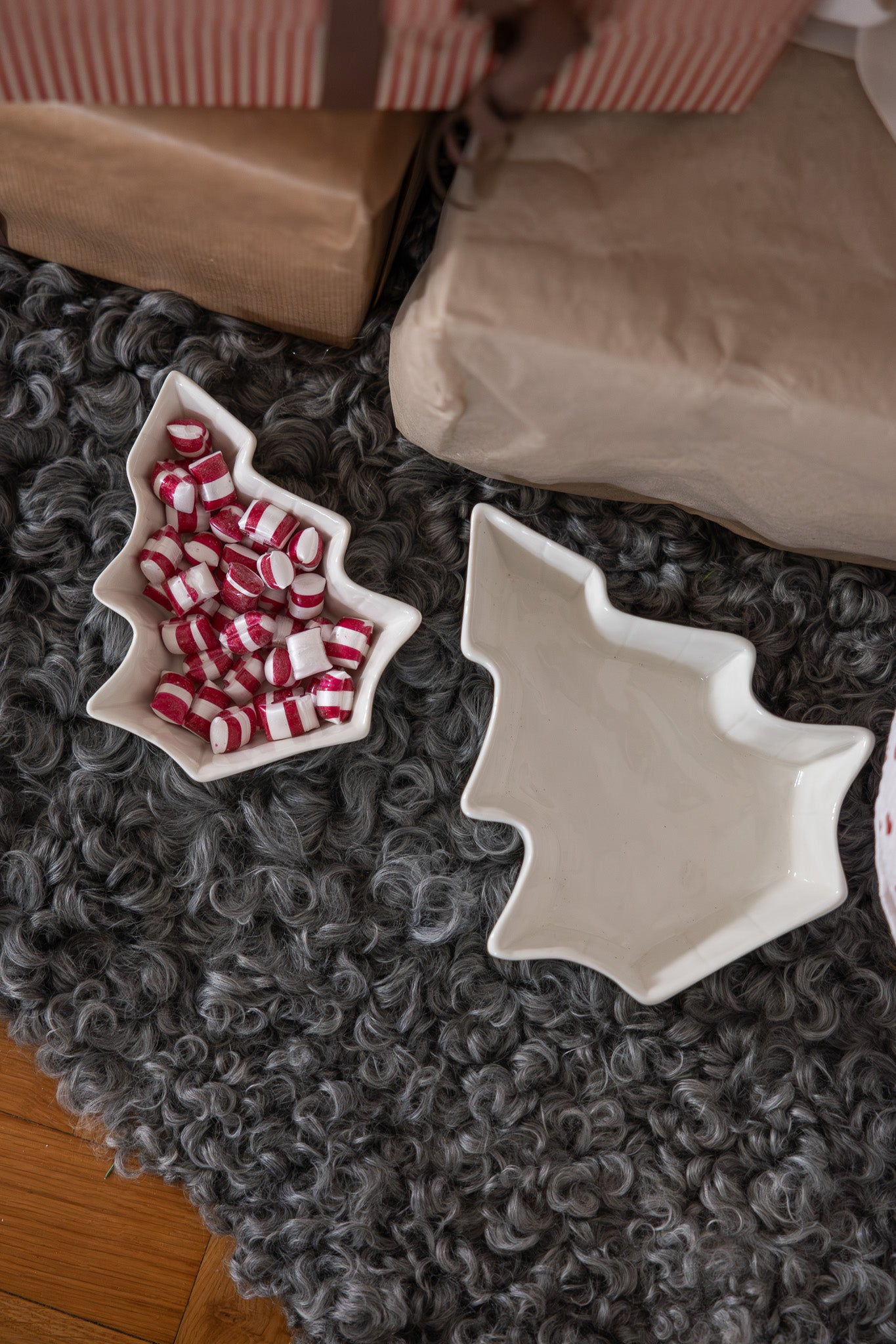 Stilig juletreformet keramikkskål, perfekt til servering av både julegodteri og pepperkaker. Den er også vakker i sin enkelhet og en fin detalj å pynte bordet med.